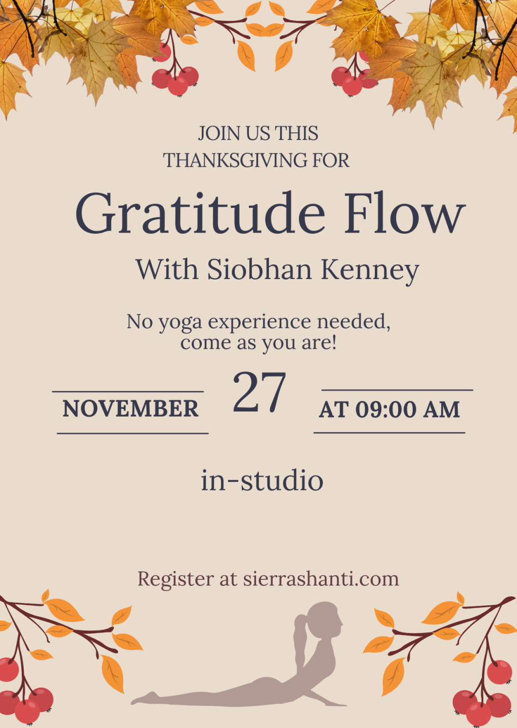 Gratitude Flow is a creative, mindful flow designed to bring balance to the body and the mind through holding poses and exploring what each pose has to offer you. When we slow down we relax the nervous system, we focus on our breath, & we become stronger mentally and physically.